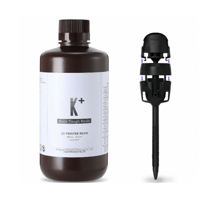 Смола K+ представляет собой чистую черную жидкость, и напечатанные детали не будут выглядеть сине-фиолетовыми под солнечным светом, как смола K. Их текстура нежная и аналогична деталям, полученным методом литья под давлением, придавая созданным изделиям высококачественный и красивый внешний вид. Этот материал идеально подходит для изготовления прототипов, художественных работ, предметов интерьера и игрушечных аксессуаров для проверки внешнего вида.
