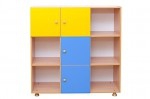 Шкаф-стеллаж «Мозаика» изготавливается в двух- или трёхсекционном варианте. Выполнен из ламинированной ДСП 16 мм. Задние стенки изготовлены из ламинированной ДВП 3,2 мм. Кромки щитовых элементов облицованы кромочным пластиком толщиной 0,2мм. Сборка секций из щитовых элементов производится с помощью винтов - конфирматов, эксцентриковых стяжек и шкантов.  Особенностью шкафа-стеллажа «Мозаика» является возможность установки дверок на все ниши стеллажа. Количество ниш двухсекцинного шкафа–стеллажа – 6 (две по ширине, три по высоте), трехсекцинного шкафа–стеллажа – 9 (три по ширине, три по высоте). Размер ниши: ширина - 377 мм, высота – 377 мм, глубина – 400 мм. Дверки имеют один размер 397х397 мм и являются взаимозаменяемыми. Кромки дверок облицованы кромочным пластиком толщиной 2 мм. Цвет кромочного пластика – «Бук». Количество и цвет дверок выбирается по желанию заказчика. Двухсекционный вариант шкафа-стеллажа устанавливается на четыре опоры, трехсекционный на шесть регулируемых опор, позволяющих компенсировать неровности пола.