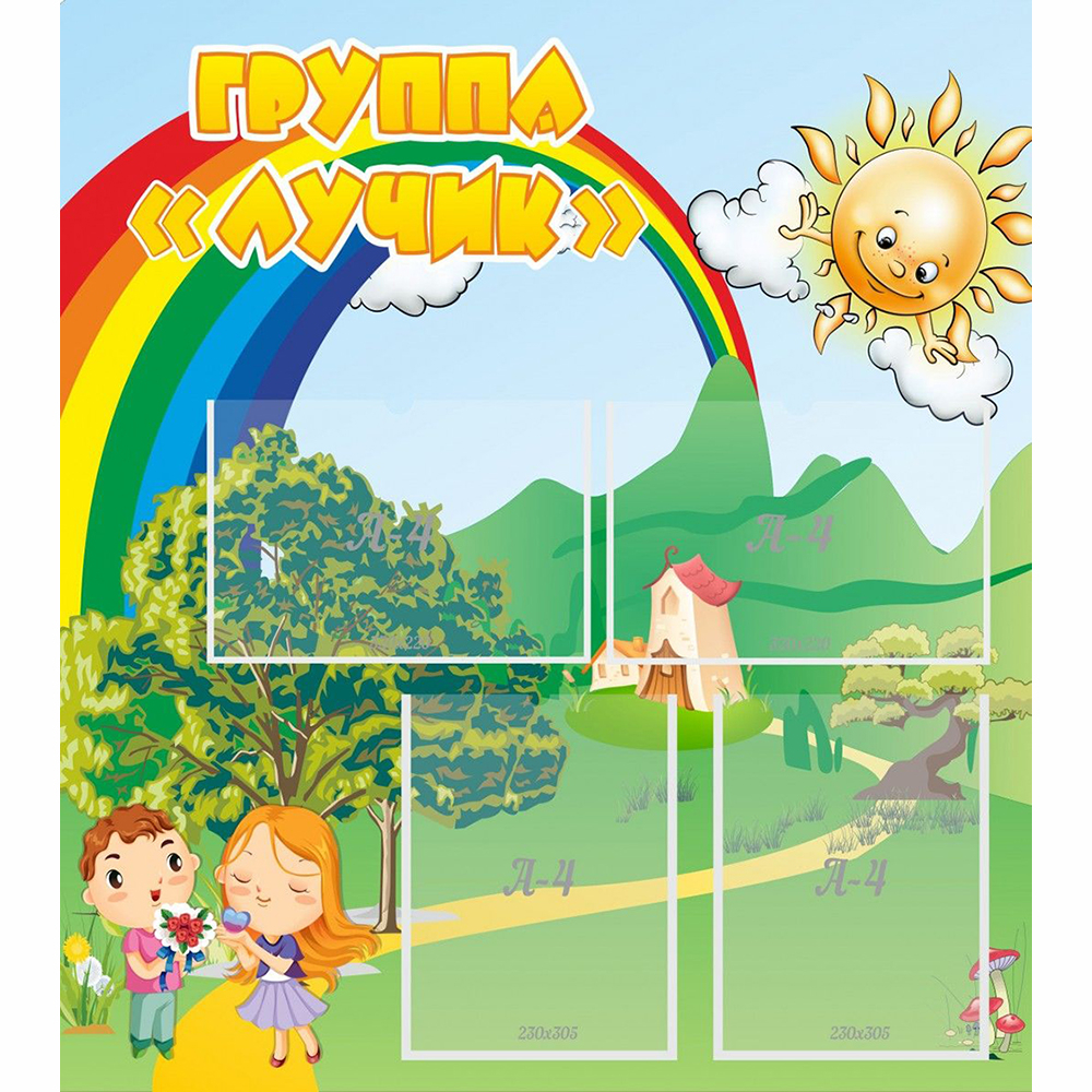 Данный тематический информационный стенд создан дизайнерами для группы «Лучик». Главным элементом дизайна является разноцветная радуга, расположенная в левой части стенда. Сказочное солнце разгоняет тучи, давая детям больше тепла. Возле тропинки раскинулся большой и сильный дуб, а вдали виднеются домики.