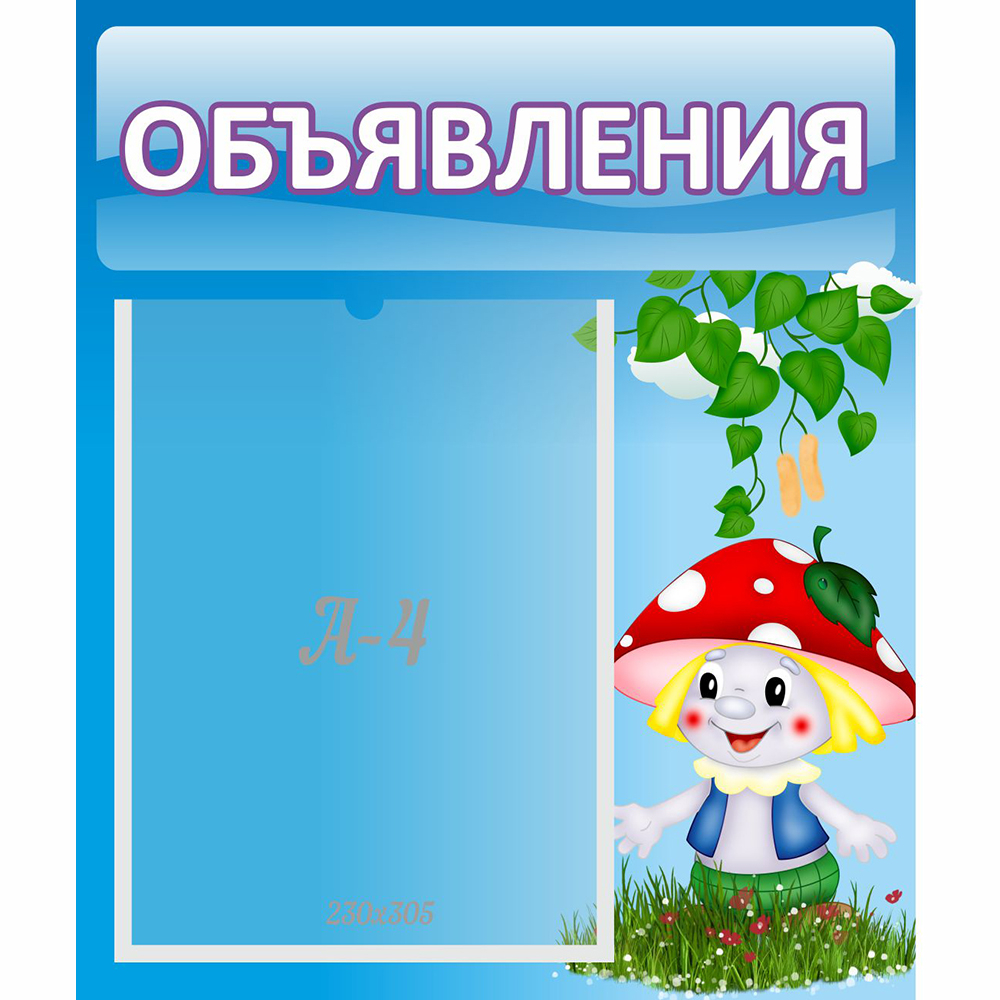 Для организации малышей лучше всего завести отдельный стенд для объявлений. Тогда дети будут точно знать, что там появляется всегда что-то новое, и обязательно интересное. Данный стенд сделан специально так, чтобы привлечь внимание каждого ребенка, чтобы объявления не прошли мимо своих адресатов. Какие именно объявлений публиковать на стенде будет выбирать уже сам педагог, но ясно то, что данный стенд красиво и красочно подойдет любого интерьеру помещения, и будет актуально смотреться в нем. Это прекрасное решение организационных вопросов, и отличный способ привлечь внимание детей.