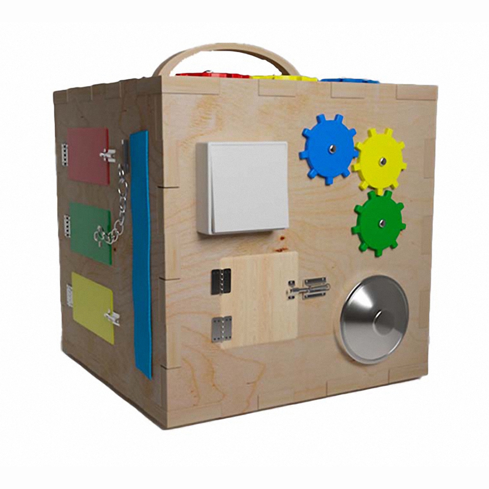 Развивающий деревянный бизикуб позволяет ребенку познакомиться внешним миром, удовлетворить детское любопытство, а также улучшить воображение, мелкую моторику, логику, научиться быть усидчивым и сконцентрированным на одном деле, различать цвета, формы, буквы и цифры. Также бизикуб сочетает в себе высокое качество, исключительную полезность и доступную стоимость.