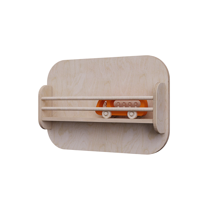 Полка для хранения дидактических, развивающих и рабочих материалов для демонстрации и обеспечения более простого и быстрого доступа. Горизонтальные перекладины препятствуют падению с полки элементов ее наполнения. Конструкция является не только практичным решением, но и стильным и экологичным украшением пространства.