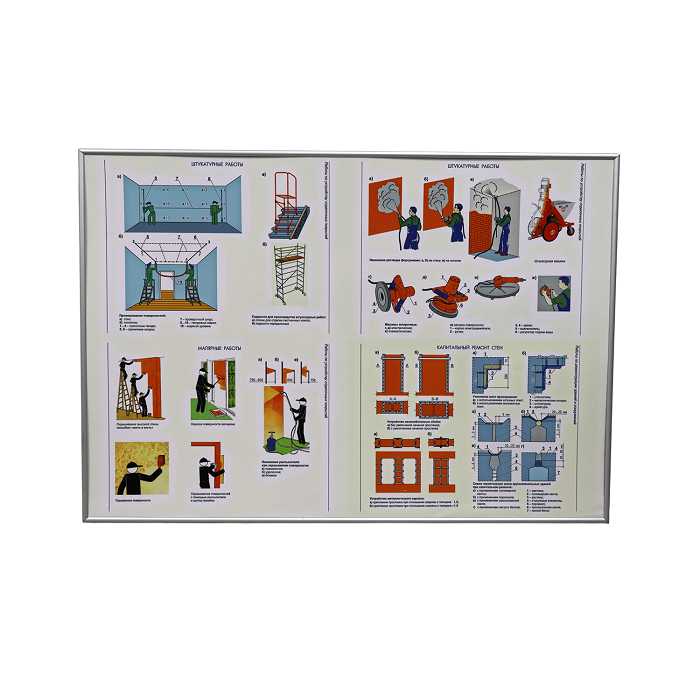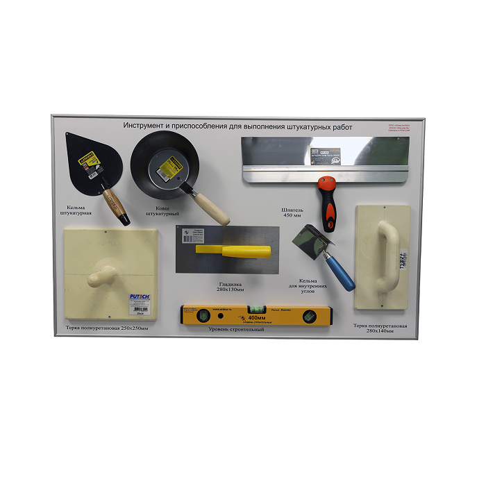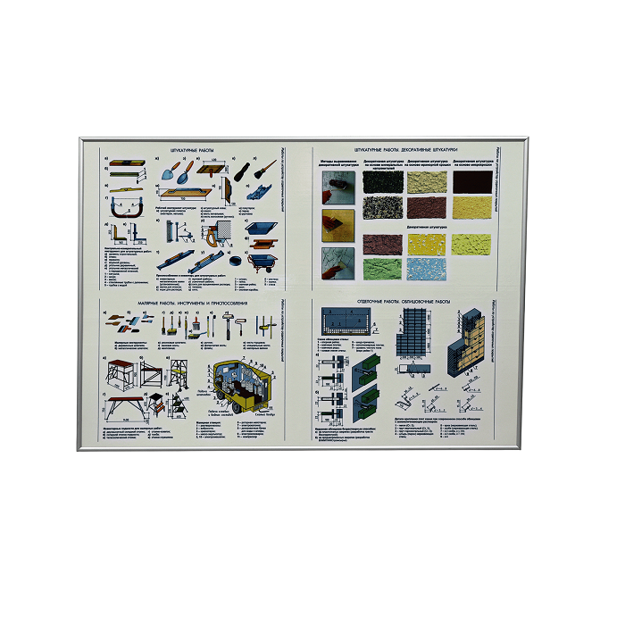 Учебно-лабораторный комплект (комплекс) «Штукатурные работы» предназначен для наглядной демонстрации этапов подготовки стен, нанесение штукатурных смесей различными способами, финишной отделки стен.